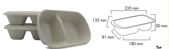 Dimensions: 235L mm x 132W mm x 50H mm Capacity 850ml (Pack size 50 units)